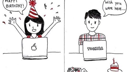 Sevdiyiniz sizdən uzaqdadırsa, həyat hər ikiniz üçün çətindir. Yalnız qalmaq, birlikdə bir şeylər edə bilməmək, həyatı dadsızlaşdırır.. Özünü rəqqas və səyyah olaraq tanıdan blogger Viola Wang, bu vəziyyəti izah edən illüstrasiyalar silsiləsi hazırlamışdır. Rəsmlərdə İngilis illüstrator Philippa Raysın bir qəhrəmanından ilham aldığını söyləyir. Şəkillər rəqəmsal deyil, əllə çəkilmişdir. Fərqli qitədə yaşadığı sevgilisiylə 3 illik sevgisini canlandırdığı şəkillər bizə çox səmimi gəldi və sizinlə paylaşmaq istədik. 🙂 Bu hüznlü şəkillərdən sonra, bütün sevənlərin qovuşmasını diləyirik…