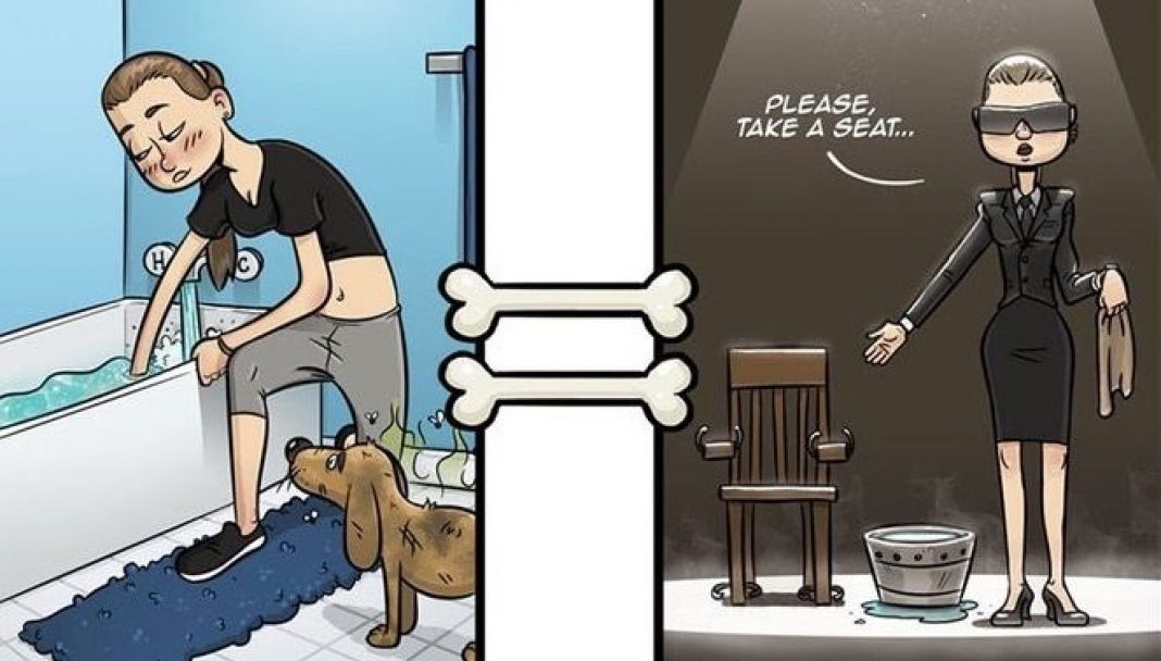 İllüstrator Robert Brown, insanlarla itlərin eyni bir hadisəyə fərqli münasibətlərini canlandıran əyləncəli şəkillər hazırlamışdır. Məsələn insan çimməyi bir rahatlama olaraq düşünərkən, bir it üçün çimmək işgəncə olaraq görünür. Xüsusilə iti olanlar bu şəkilləri çox sevəcək və itini daha yaxşı anlayacaqdır.
