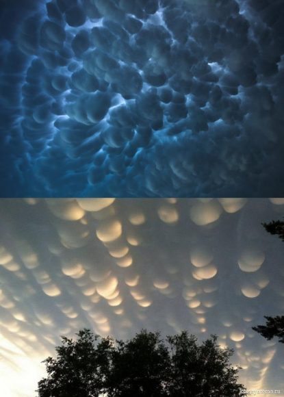 Şəkildə gördüyünüz buludlar təbiətdə çox nadir hallarda rast gəlinən Mammatus adlı buludlardır. Bu növ buludlar adətən baş vermiş qasırğalardan sonra yaranır.