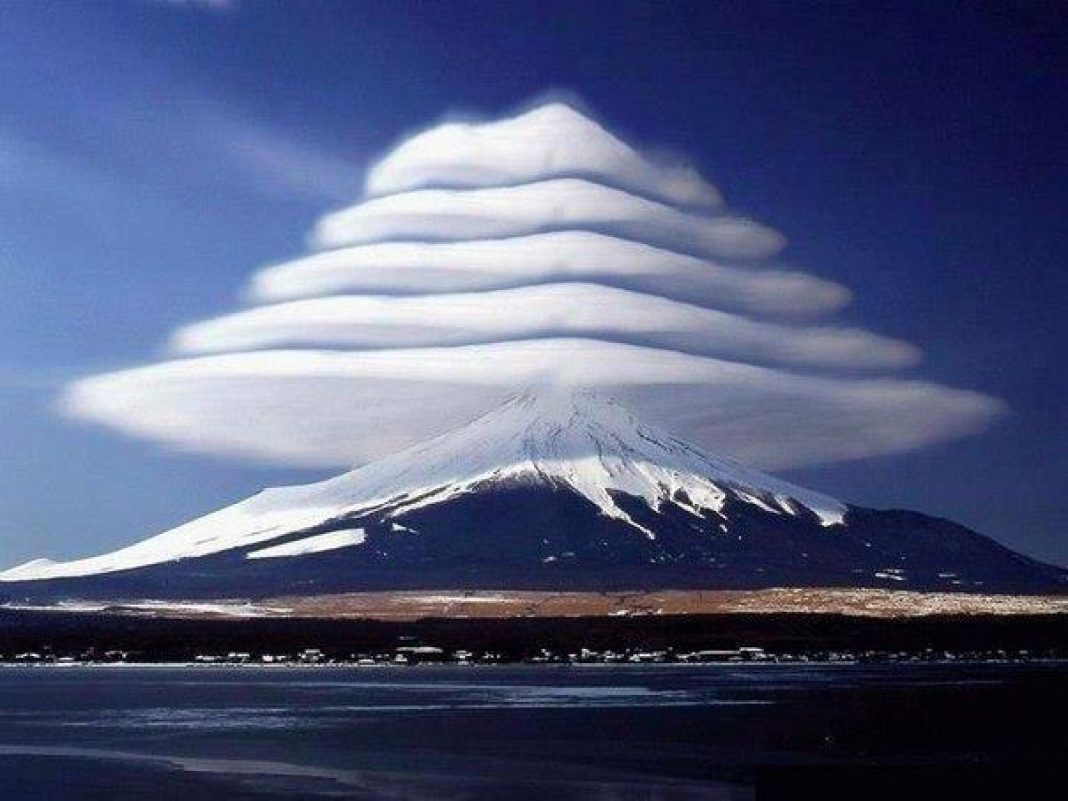 Yaponiya, Fudzi dağının üzərində lentikulyar buludlar..