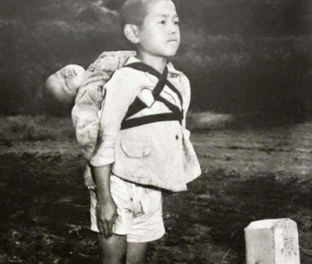 İl 1945… Naqasakiyə atom bombası atılmasının ardından, qardaşının cəsədini ölülərin yandırıldığı sahəyə gətirən bir Yapon uşaq… Bu rəsmi çəkən Joe O’Donnel əslində bölgəyə Amerikalılar tərəfindən göndərilən bir casus idi. Vəzifəsi, Naqasaki və ətrafında yüzlərlə fotoşəkil çəkib bunları Amerikaya yollamaq idi. Beləcə səlahiyyətlilər bombanın gücü haqqında daha yaxşı fikir sahibi olacaqdılar.